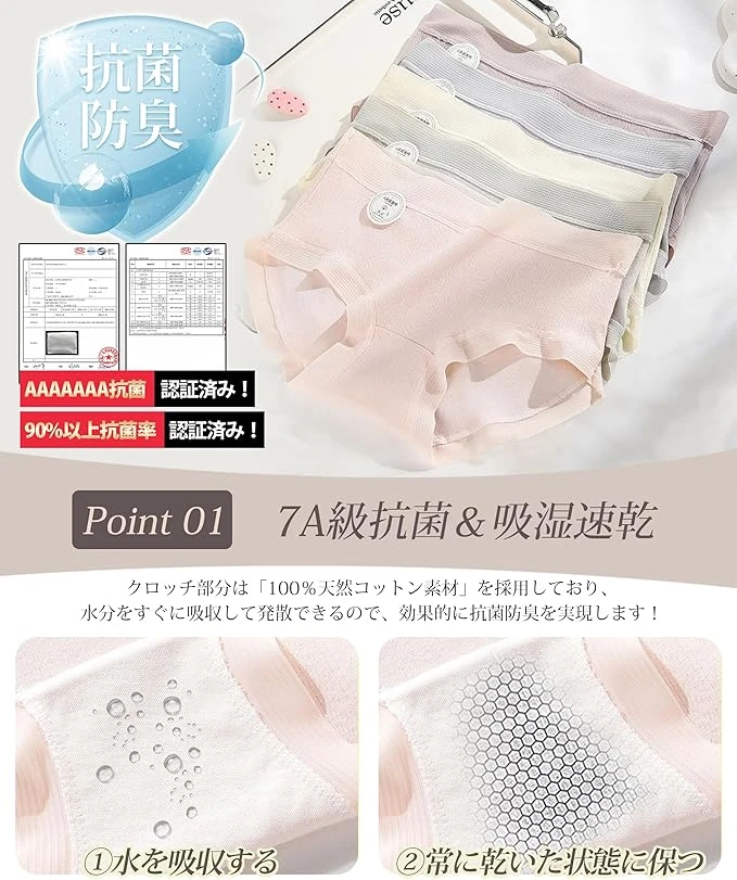 (Đạt chuẩn kháng khuẩn AAAAAAA, thấm hút mồ hôi và nhanh khô) Quần lót SLEEPSINERO dành cho nữ được làm từ 100% chất liệu cotton tự nhiên ở phần đáy quần, giúp thấm hút và bay hơi mồ hôi nhanh chóng, từ đó đạt hiệu quả kháng khuẩn và khử mùi. Được chứng nhận bởi các viện kiểm nghiệm độc lập quốc tế với "tỷ lệ kháng khuẩn trên 90%". Phần thân chính sử dụng 95% cotton và 5% spandex cho khả năng thấm hút mồ hôi và thoáng khí tốt. Quần short nữ cũng có cấu trúc lưới thoáng khí giúp tăng cường khả năng thoát mồ hôi. Luôn khô thoáng và thoải mái khi mặc, có thể mặc quanh năm.