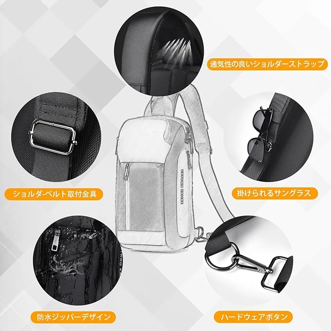 Túi có thể đeo theo nhiều kiểu: phía trước, phía sau hoặc đeo chéo. Thiết kế ôm sát cơ thể theo nguyên lý công thái học, giúp giảm mỏi khi mang lâu. Ngoài ra còn được tăng cường tính năng chống trộm, đảm bảo an toàn khi sử dụng.