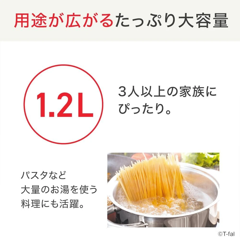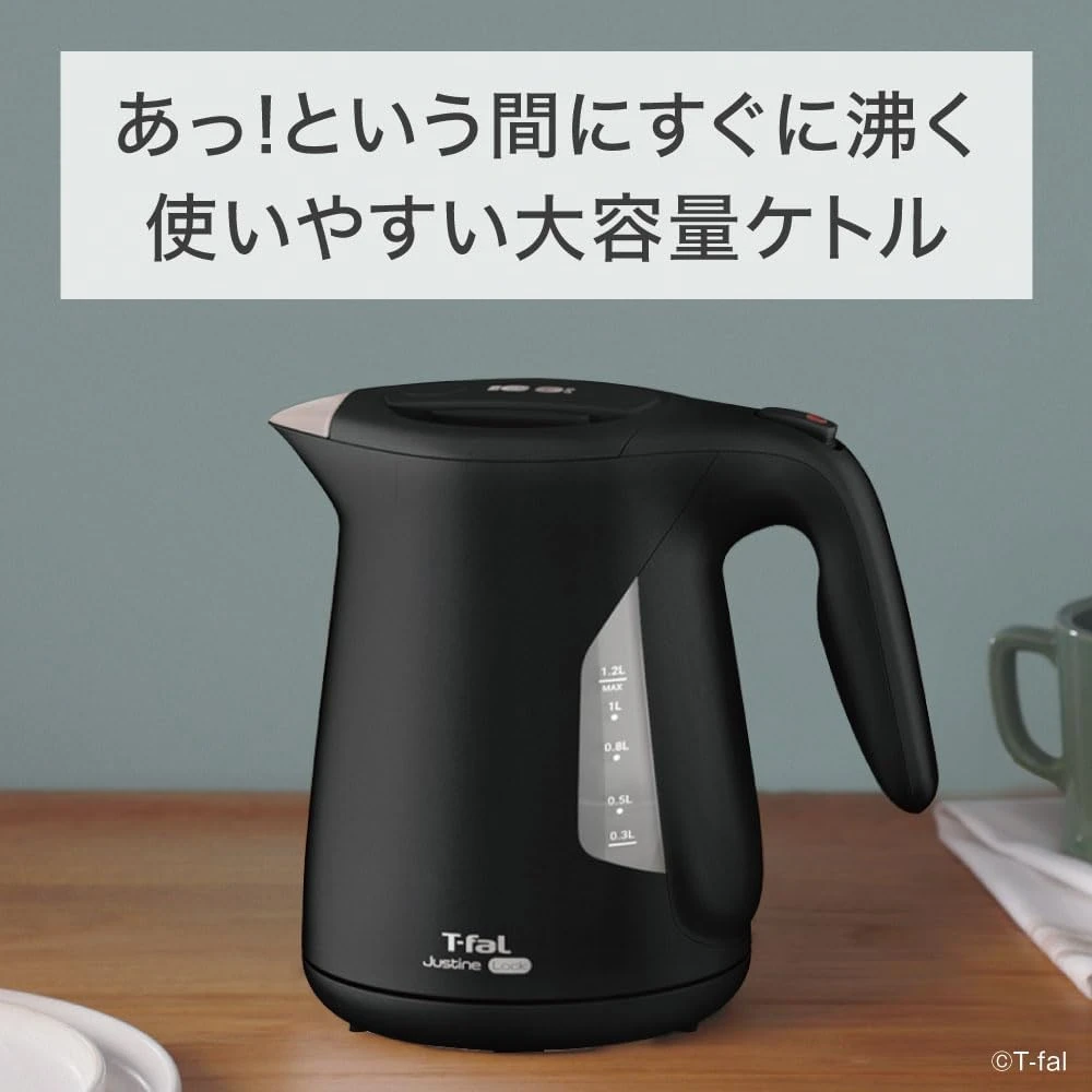 Ấm đun nước điện Tefal dung tích lớn 1.2L, khóa chống tràn, màu "Justin Lock Black", thiết kế tiết kiệm hơi nước.